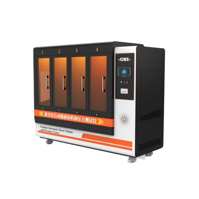 通过气泵向避孕套充入压缩空气,实时记录爆破瞬间的体积(0-60L)和压力值。